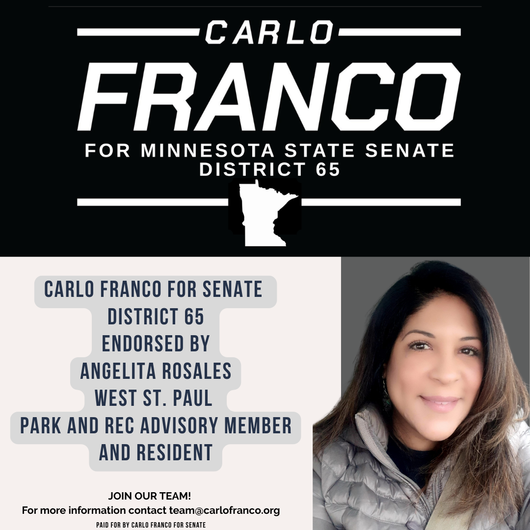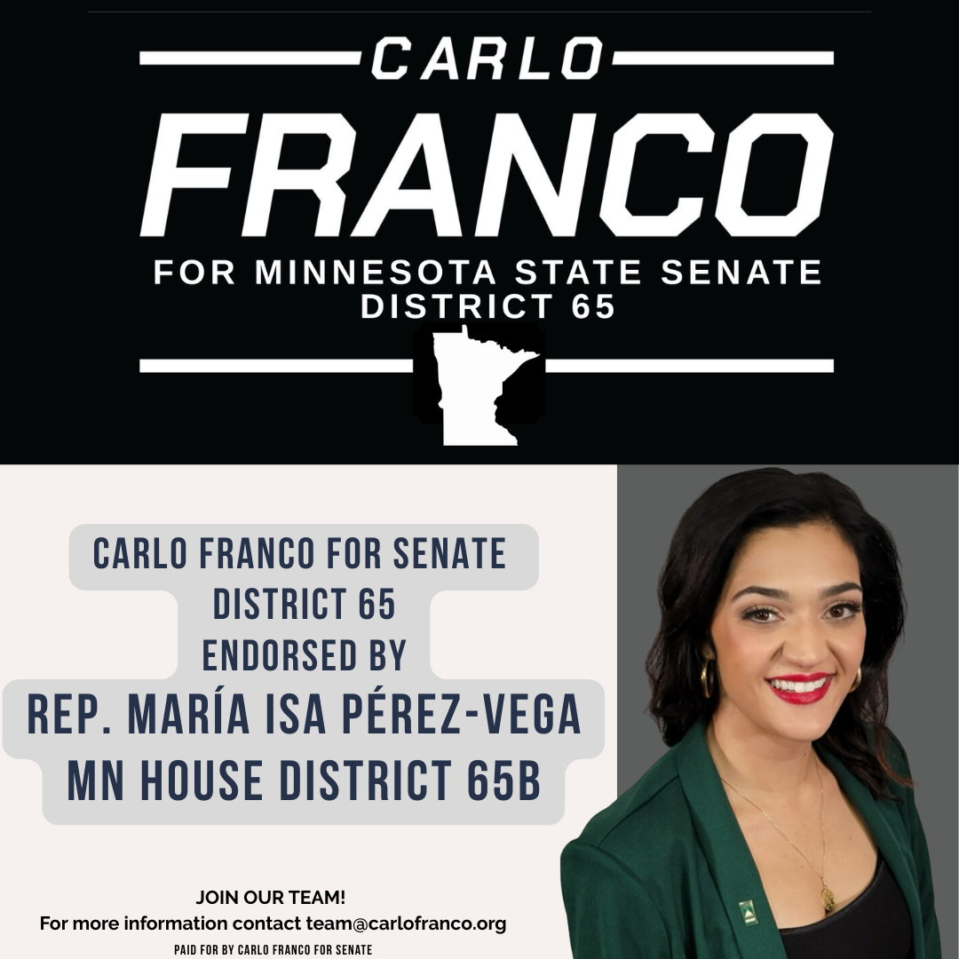 Carlo Franco offers voters a lifelong commitment to public service, rooted in his deep ties to the West Side and the diverse neighborhoods of District 65. He has a proven track record of delivering results — from leading successful statewide outreach that helped secure the DFL trifecta to serving effectively on the Saint Paul School Board and in youth employment programs. Franco brings real experience in education, workforce development, and community safety, along with endorsements from respected local leaders who trust his leadership. Voters can count on him to fight for fully funded schools, affordable living, and policies that put working families first.